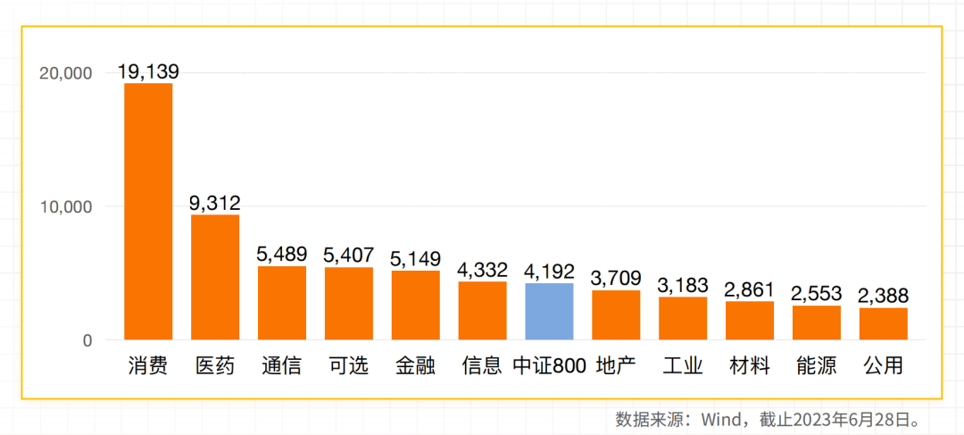长期来看,必需消费行业属于A股收益最好的行业之一。以必需消费行业的代表性指数——中证800消费(代码000932)为例。这个指数从2004年12月31日的1000点,上涨至2023年6月28日的19139点。在不到19年的时间里,上涨了18倍多,涨幅远超过其他行业。• 自己消费:比如有些人喜欢喝酒,甚至每顿饭都要小酌一口。• 投资消费:通常是高端白酒才具备的属性。比如,以前就有富豪,据说收藏了几吨的茅台。通常来说,推动各类白酒消费的具体因素,也会有所不同。• 国内人均可支配收入增长,会带动白酒的自己消费、社交消费和送礼消费。
