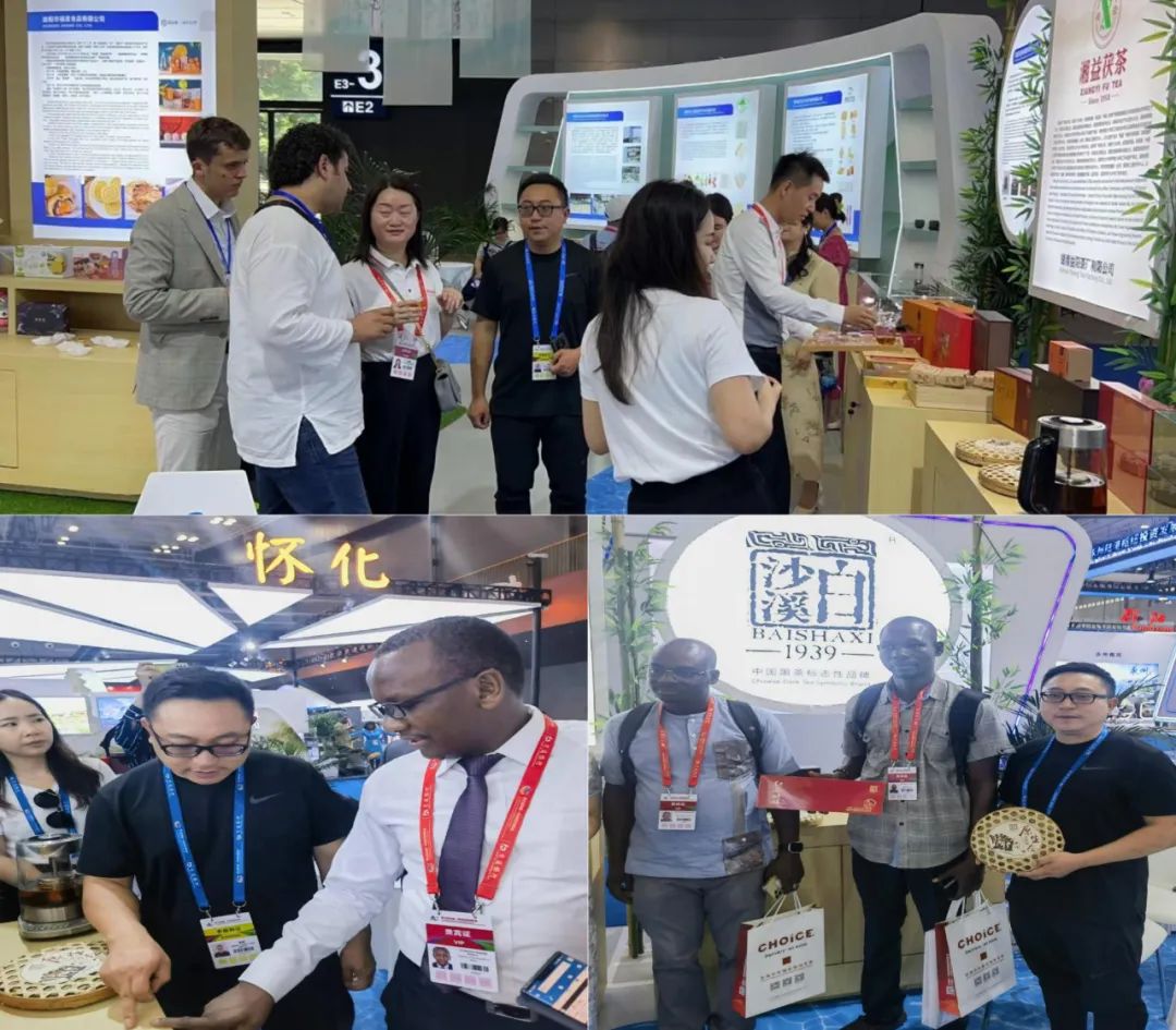 展会现场,公司外贸部携众多新品“红色福茶”、“七星”、餐饮茶、红绿茶等与国内外朋友见面。展会期间各级政府领导与众多国外友人莅临白沙溪展位,其中原生态千两饼的古朴包装与其口感、香气等都受到非洲友人的称赞和认可,公司也将借助此次活动深化中非合作,寻求新的商机,让一片中国树叶子续写中非友谊。