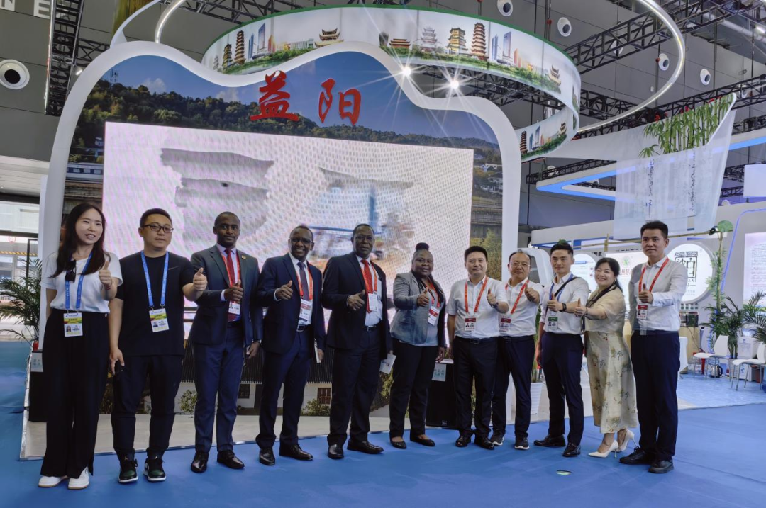 (益阳市商务局杨卫东副局长、市贸促会田建强书记与肯尼亚大使馆领导及企业代表合影)