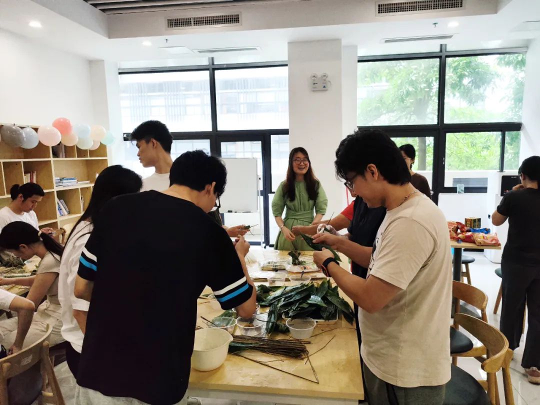 活动现场,大家兴致高昂,按照各自偏好或咸粽或甜粽,折粽叶、装糯米、放馅料…公司员工纷纷表示:现学现包,是个新的挑战,随着练习大家手法越来越娴熟,纷纷展示自己的劳动成果。在等待粽子煮熟的同时,大家开始制作艾叶挂件及艾叶香包,艾叶能够驱散蚊蝇,也有祈福健康平安的美好寓意。