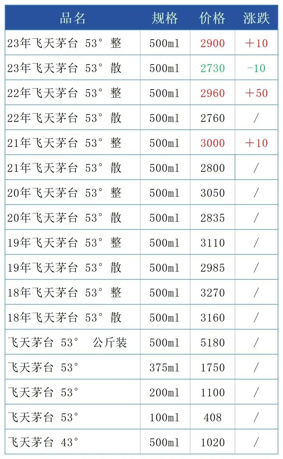 原箱茅台大涨,每日名酒报价2023年6月30日
