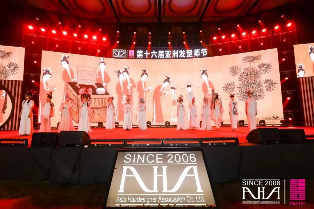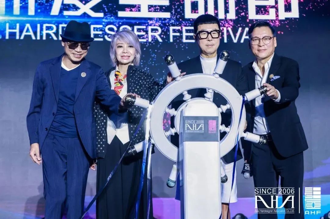 开幕式由AHA台湾区会长Benny(中国台湾)、AHA终身荣誉会长Winnie Loo(马来西亚)、AHA终身荣誉会长李哲(韩国)、AHA创始人赵劲松(中国)为第十六届亚洲发型师节揭幕。(按照现场站位排序从左至右)