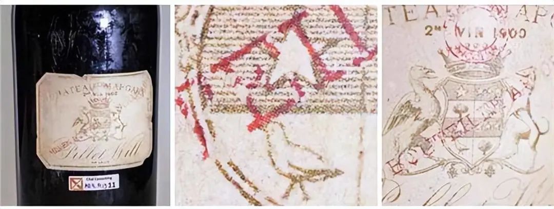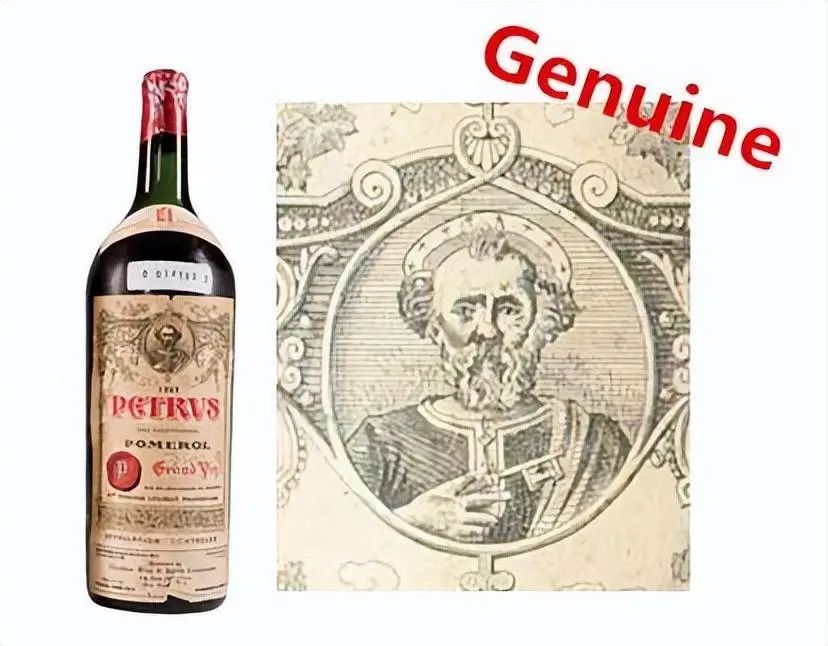 在欧洲和美国,Pétrus就像中国的拉菲一样,也是许多造假者最愿意伪造的品牌。下面图片的下方是1960年正宗的Pétrus,上面两张是1961年的假葡萄酒标签。黑色的墨水,错误的纸张,缺少细节,用肉眼就能分辨出真伪(但首先要在脑海中对原作有一个清晰的印象)。
