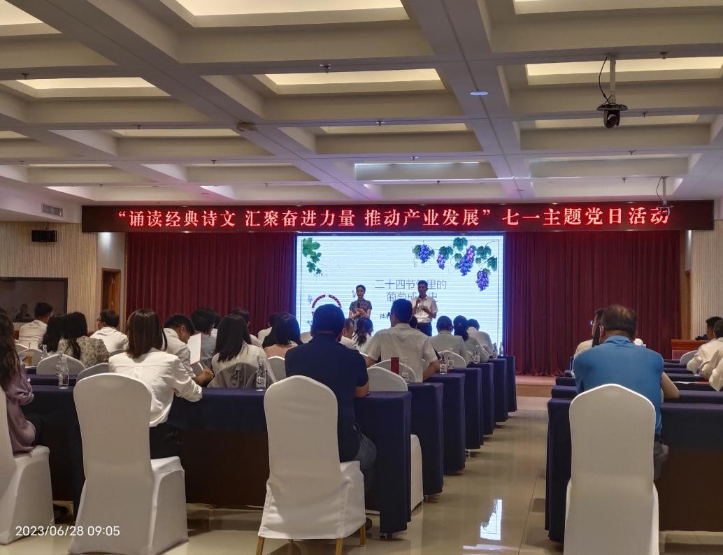 为庆祝中国共产党成立102周年,全面学习贯彻党的二十大精神,深入开展学习贯彻习近平新时代中国特色社会主义思想主题教育,团结引领葡萄酒产业系统传承红色基因,赓续红色血脉。6月28日,贺兰山东麓园区管委会机关党委与葡萄酒行业党委联合举办“诵读经典诗文 汇聚奋进力量 推动产业发展”七一主题党日活动。