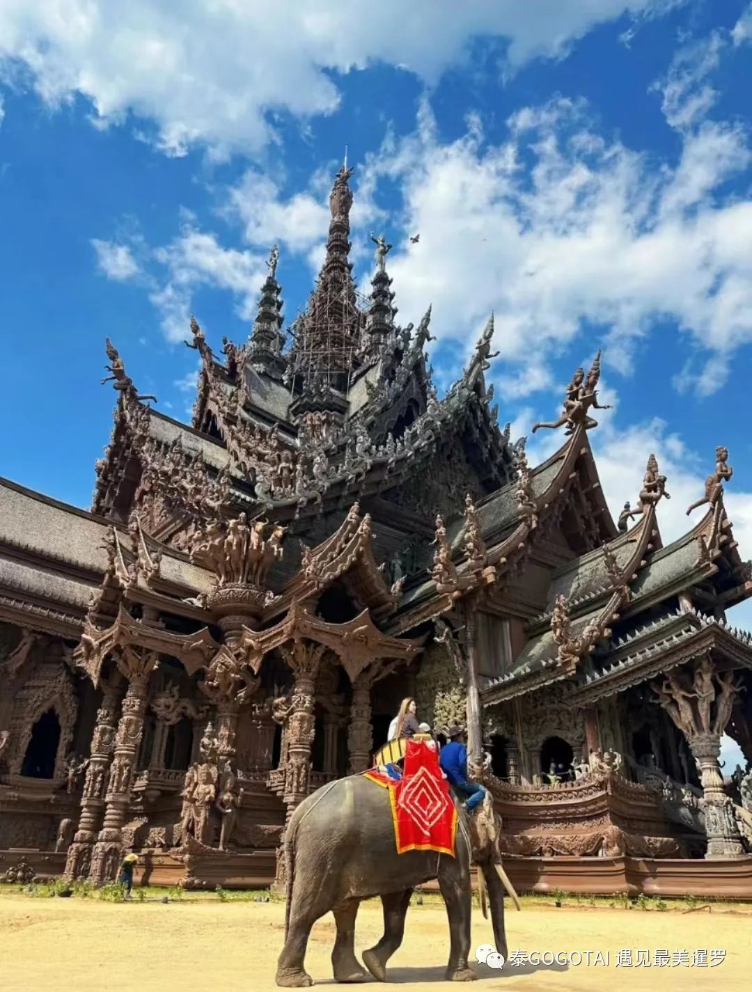 除了参观寺庙,园区内还有骑大象的游玩项目.