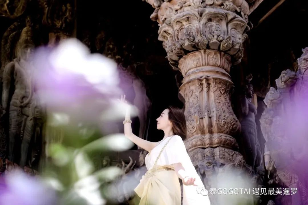 拍照衣服推荐:泰服租借选白色;或者自带白色裙子,白色可以拍出很仙的感觉;或者红色长裙再配一个披风,后期把色调调成暗调会很高级。