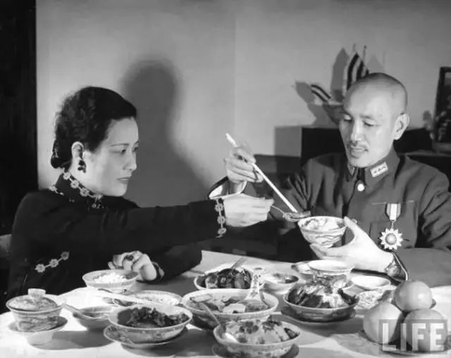 重庆,蒋介石与宋美龄共进晚餐。卡尔·迈登斯/摄,大约拍摄于1940-1941年。
