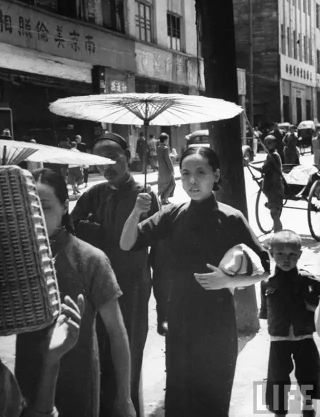 重庆,街上打油纸伞的妇女。卡尔·迈登斯/摄,大约拍摄于1940-1941年。