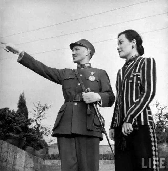 重庆,蒋介石与宋美龄出外视察。卡尔·迈登斯/摄,大约拍摄于1940-1941年。
