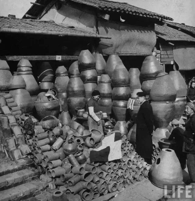 重庆,卖土陶制品的店铺。卡尔·迈登斯/摄,大约拍摄于1940-1941年。