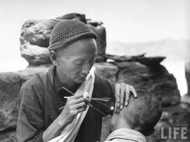 重庆,掏耳朵。卡尔·迈登斯/摄,大约拍摄于1940-1941年。