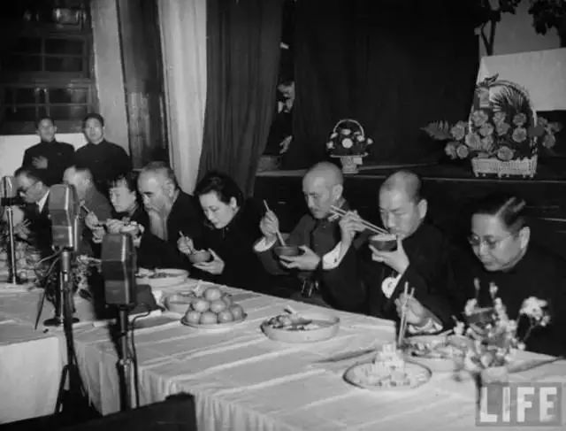 重庆,纪念"新生活运动"七周年,政府要员在吃素食。卡尔·迈登斯/摄,大约拍摄于1940-1941年。