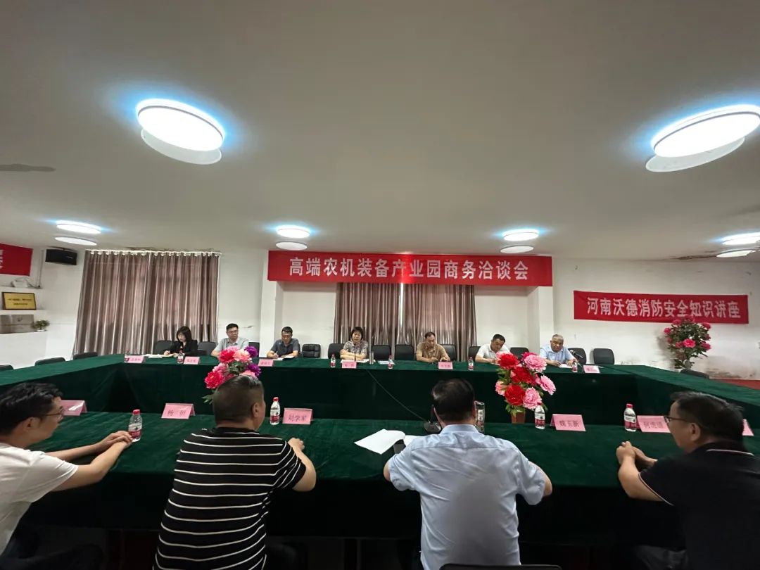 6月25日,沃德机械邀请新乡农机中心主任朱莉、辉县市农业农村局局长杨玉明、辉县市农机中心主任杜志永、洪洲乡党委副书记、乡长王秀利以及相关农机企业负责人共同参加高端农机装备产业园商务洽谈会。