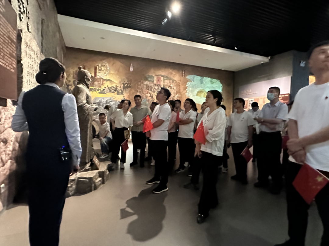 随后,全体人员还观看了渡江战役4D影片,全方位的的感受了这段波澜壮阔而又惊心动魄的历史画卷,在场的党员们深深体会到中国共产党带领人民“打过长江去,解放全中国”的伟大胜利。在纪念馆内,大家不时的驻足凝望,不时感叹革命先烈的英勇伟绩,一股浓烈的爱国之情不知不觉的从每个人心底最深处涌起,爱党爱国热情久久不能平复;忆往昔峥嵘岁月,重温入党誓词,接受革命传统教育,进一步坚定理想信念,汲取强大精神力量。