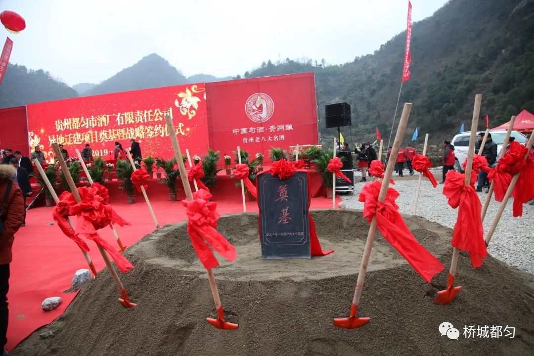 2019年1月17日,贵州都匀市酒厂有限责任公司异地搬迁扩建项目奠基暨战略签约仪式,在有“小桂林”之称的小围寨街道马尾村川田组隔妹河畔举行。