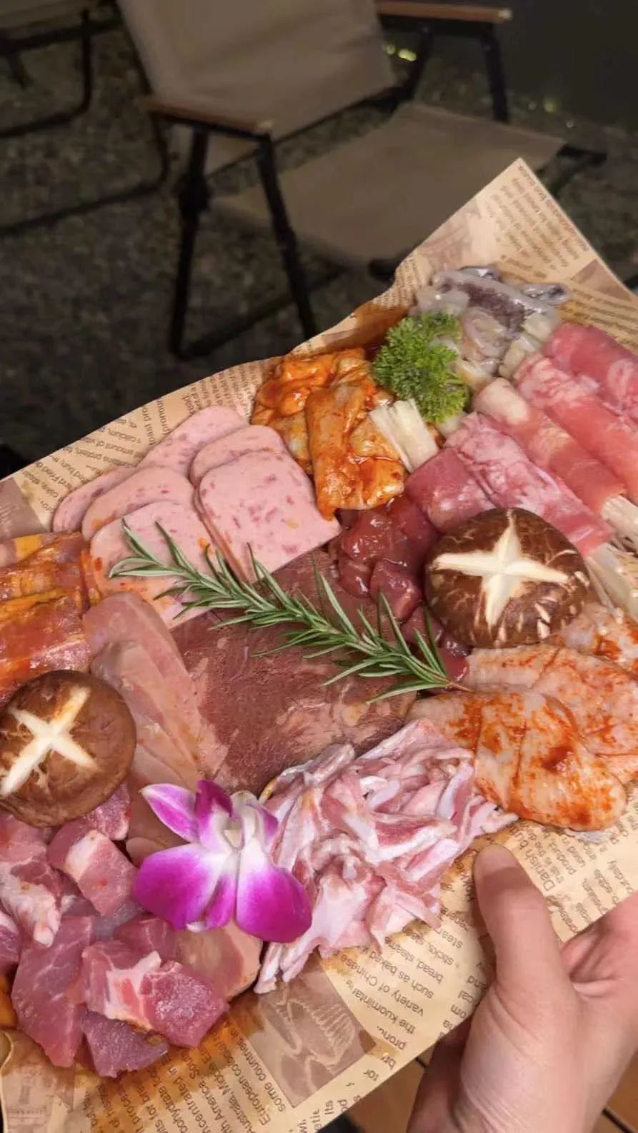 随手夹起一块块肉肉,放在烤盘上,看着它被炭火慢慢烤出鲜香,滋滋滋滋的声音,仿佛一把钩子,让口水不自觉分泌....