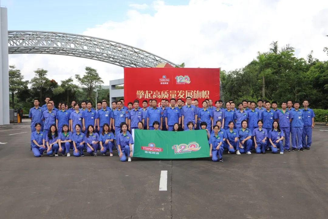 6月30日上午,揭阳公司举行“擎起高质量发展旗帜,共创美好未来”——庆祝青岛啤酒成立 120 周年纪念标识传递活动,恰逢揭阳公司12周年庆典,旗帜传递活动成为庆祝周年活动的重要部分。本次旗帜传递由副总经理兰信暖同志主持,揭阳公司领导班子、中层管理干部以及员工代表共计60人参加了活动。