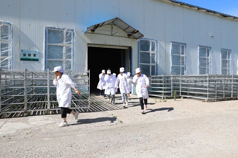 由于液氨泄漏可能引起大爆炸及中毒事件,造成重大人员伤亡以及引发人员中毒、环境污染等次生事故,龙绿食品公司立即向农场应急办公室报告,多部门联动展开全面救援。通过各组密切配合,经过10分钟的紧张处置,采取消防水稀释、警戒隔离、抢修堵漏、人员救护、废液收集等措施,泄漏罐体阀门被成功封堵,车间人员全部成功疏散,液氨泄漏应急处置疏散演练圆满结束。