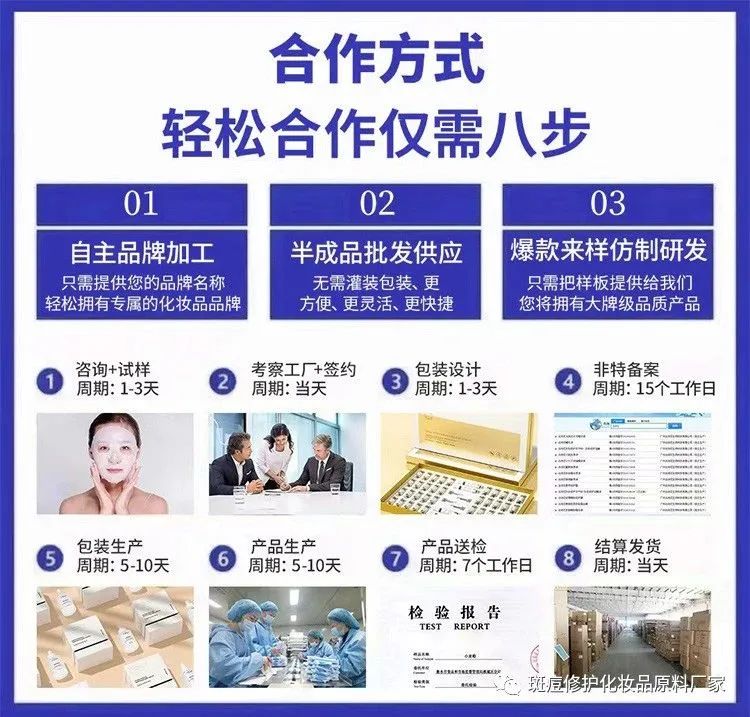 可根据客户要求,仿样,打样,定制包材,贴牌,包装设计,代理备案送检,一站式服务,让你轻松拥有自己的品牌