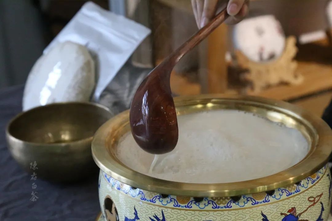 现场特邀国家高级茶艺师、全国茶馆等级评审委员会评审员、呼和浩特电视台《饮茶与中医养生》栏目特邀讲师、蒙古族老师黄迎秋女士,以陈府白茶烹煮蒙古奶茶。