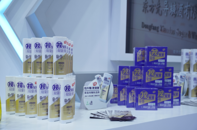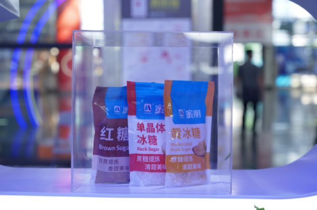 展会上,东亚糖业的展台吸引了众多观众的关注。东亚糖业展示了其知名度高的三种糖产品:蜜朋黄冰糖、单晶体冰糖和红糖。