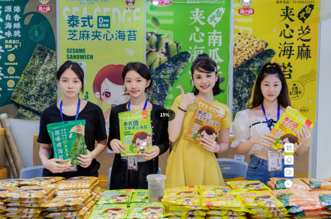泰柬越国际贸易进出口有限公司展出的海苔,由海带干燥后裁切成薄片,具有丰富的营养和独特的口感。