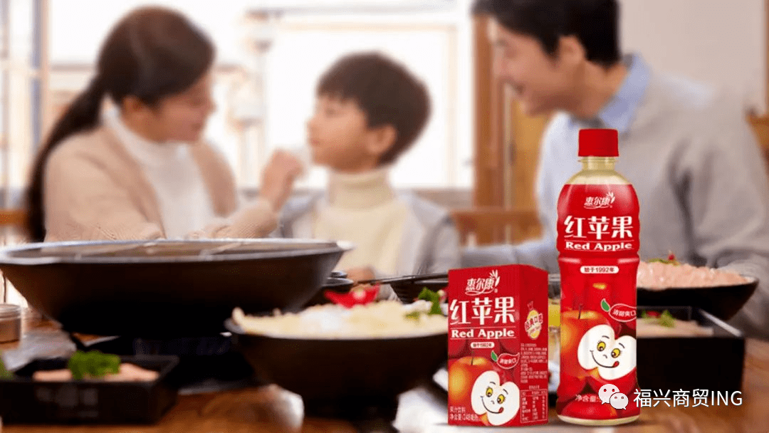 另外,惠尔康红苹果还自带优势,红苹果自带喜庆的红色的包装,以及由品牌提出的“喝红苹果,日子红红火火”的广告语早已经深入人心,在端午、中秋、春节等传统佳节,惠尔康红苹果都是节庆送礼的不二之选。除此之外,惠尔康还逐渐成为聚餐、喜宴等喜庆娱乐场景的果汁新选择