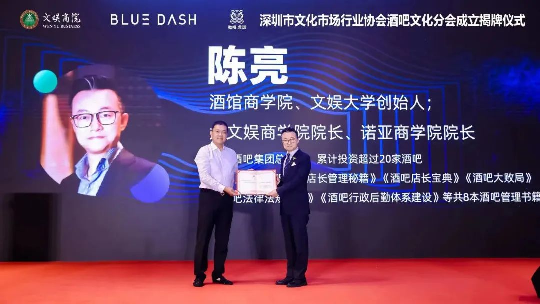 行业的高质量发展离不开专家把脉、行业培训,活动中为文娱商院、酒馆商院创始人陈亮颁发聘书,聘请他担任酒吧文化分会首席顾问,并期望他以多年深耕行业的丰富经验和成功案例,为更多酒吧投资者、管理者和从业人员提供更好的培训机会,助力深圳酒吧做好前期战略定、后期爆款打造、市场营销等工作,陪伴更多优秀酒吧长期可持续发展。