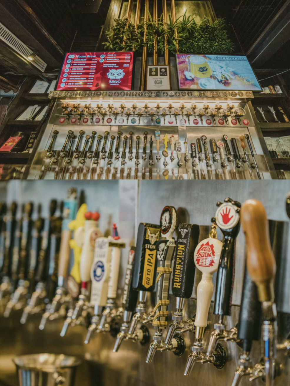 这里有口感香甜的果酒、醇香多泡的黑啤,四十余种精酿啤酒,直接从啤酒龙头加满送到你手里,搭配上各种别具一格的啤酒杯,谁说喝啤酒不能优雅呢?店内还有各式下酒菜可供选择,让你在畅饮啤酒的同时,还能用满桌珍馐犒赏五脏庙。