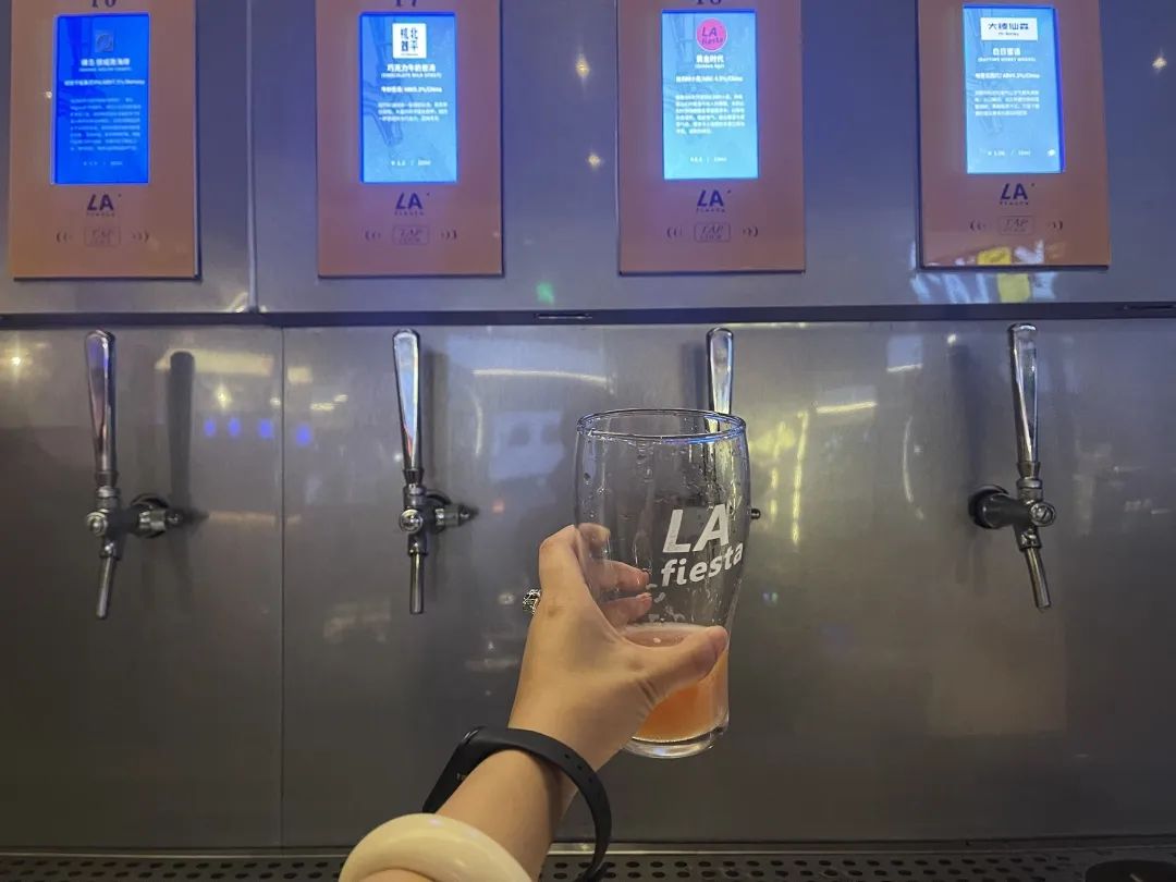 店面能容纳近百人,装修主打宽敞、舒适,设有更加高级的沙发卡座和高台区,配有一个投影仪、三台大电视,并且将酿酒设备融入店内设计,让大家的品酒的同时,对精酿有更深入的理解,L形超长水吧装置了更多的酒龙头,玩出各类新鲜感。