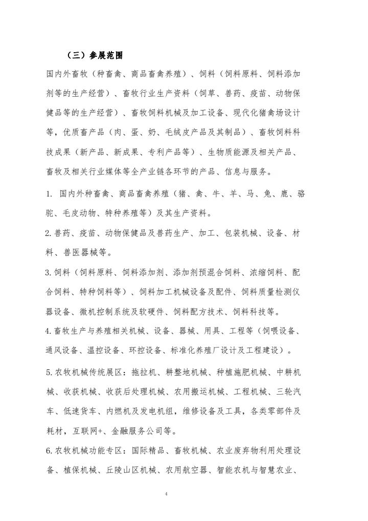 国内外畜牧(种畜禽、商品畜禽养殖)、饲料(饲料原料、饲料添加剂等的生产经营)、畜牧行业生产资料(饲草、兽药、疫苗、动物保健品等的生产经营)、畜牧饲料机械及加工设备、现代化猪禽场设计等,优质畜产品(肉、蛋、奶、毛绒皮产品及其制品)、畜牧饲料科技成果(新产品、新成果、专利产品等)、生物质能源及相关产品、畜牧及相关行业媒体等全产业链各环节的产品、信息与服务。