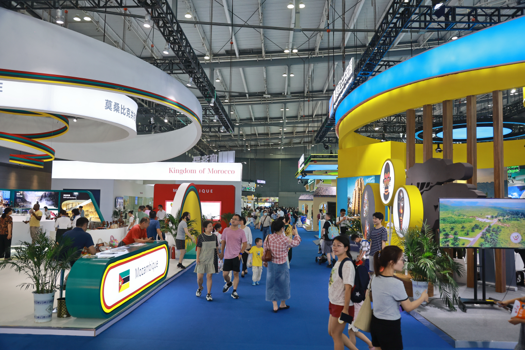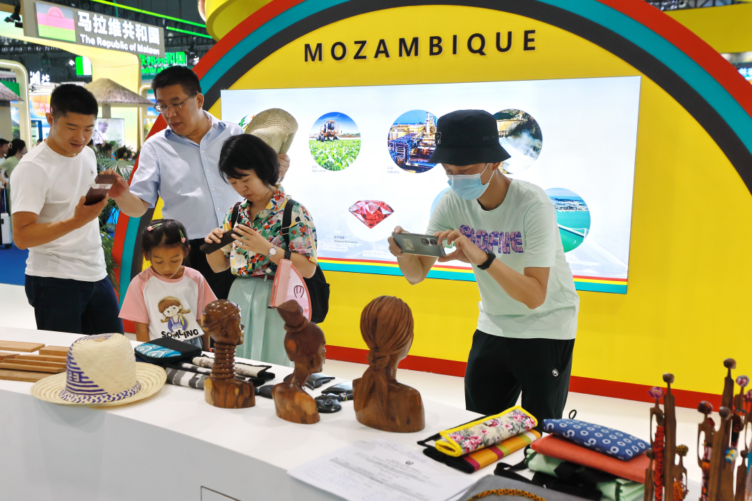 主宾国莫桑比克的展位上,几位观众对木雕产品兴趣浓厚。