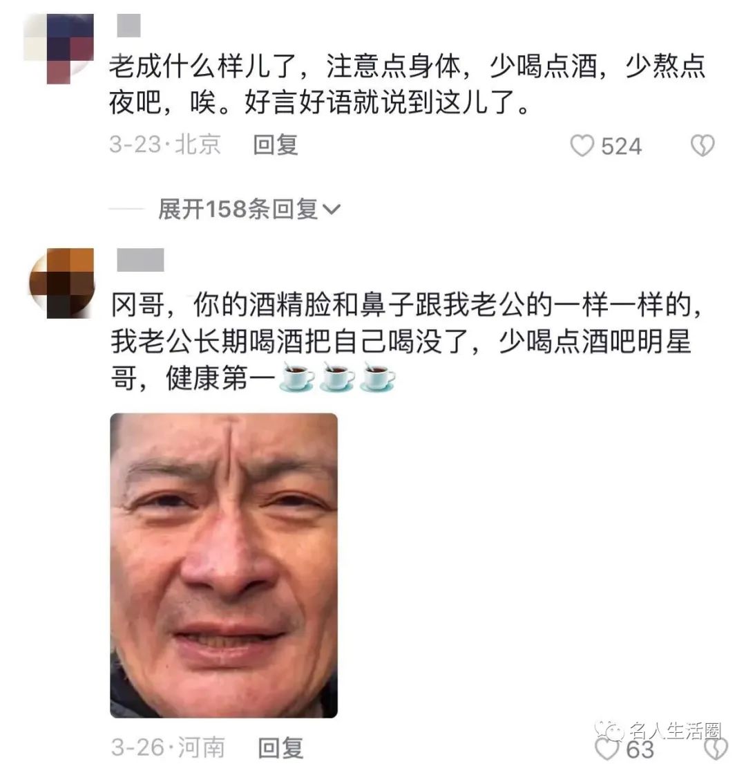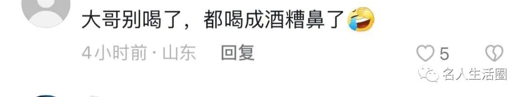 有网友觉得景岗山都喝出酒糟鼻了,不能再喝了,整张脸都快废了。
