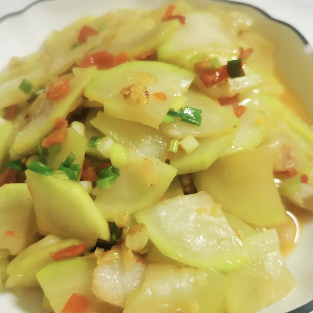 蒜蓉蒲瓜:大蒜5g、胡萝卜5g、葫芦48g