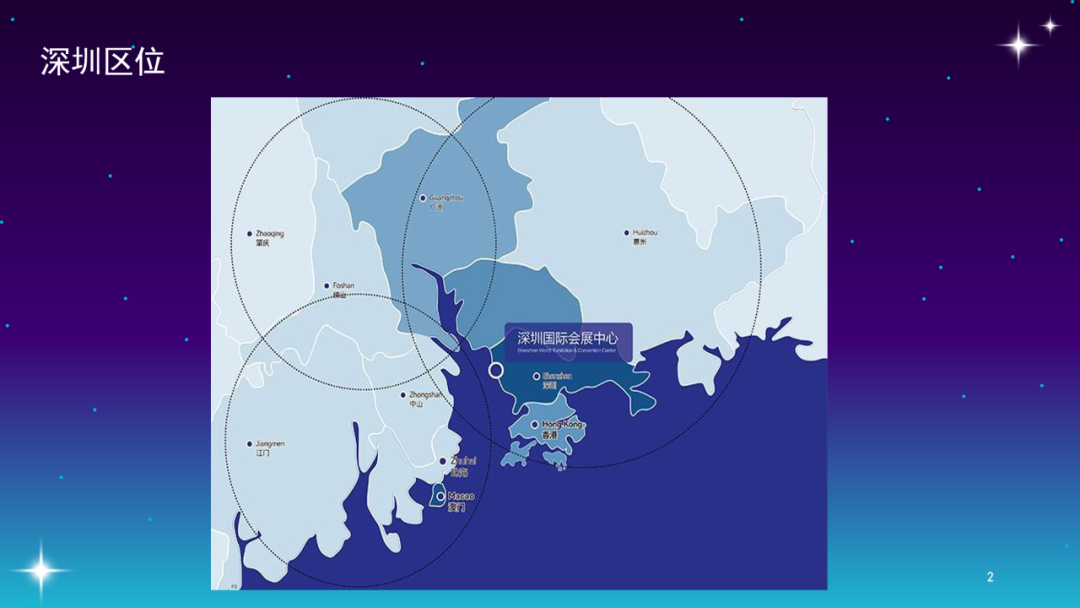 深圳国际会展中心位于粤港澳大湾区湾顶,深圳宝安机场以北。便捷的城际、市内交通条件,使得全球嘉宾可以从深圳宝安机场、香港机场、广州白云机场任一机场方便地到达展会现场。
