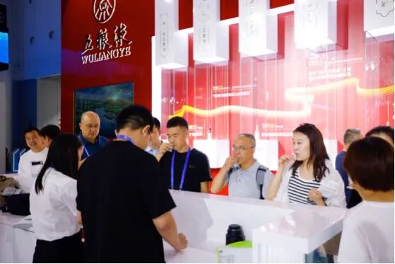 在5号企业发展馆,五粮液主题展区游人如织,热闹非凡。展区以香槟金搭配中国红为主色调,融合传统展陈与创新设计,围绕五粮液历史传承、“做强主业、做优多元、做大平台”发展战略、“五位一体”发展路径、“5111”发展目标,以及国际交流等展览展示内容多维展开,彰显五粮液作为特大型国有企业蓬勃发展的强劲势头以及打造中国式现代化酒业发展样本的“国之大者”担当。展厅汇聚展示五粮液2020迪拜世博会中国馆官方指定用酒、第五届进博会纪念酒、APEC工商领导人峰会&五粮液纪念款礼盒、博鳌亚洲论坛2023年年会指定用酒,以及五粮液·和美中国系列产品,备受瞩目,吸引来自泰国、老挝、土耳其等的全球客商驻足品鉴,对五粮液的卓越品质、醇厚口感以及所代表的中国传统文化内涵交口称赞。
