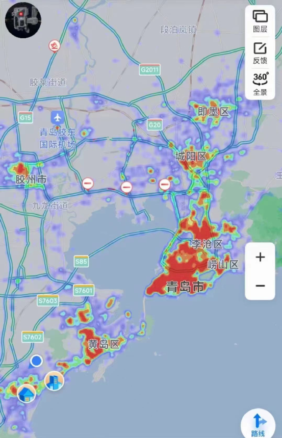 通过人口热力图可以看出,青岛人口呈块状分布。这也造就了青岛的房价呈块状分布。