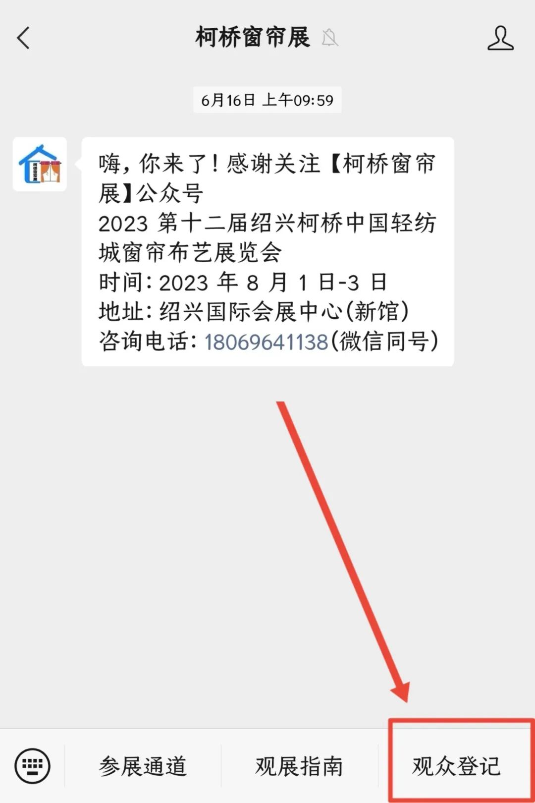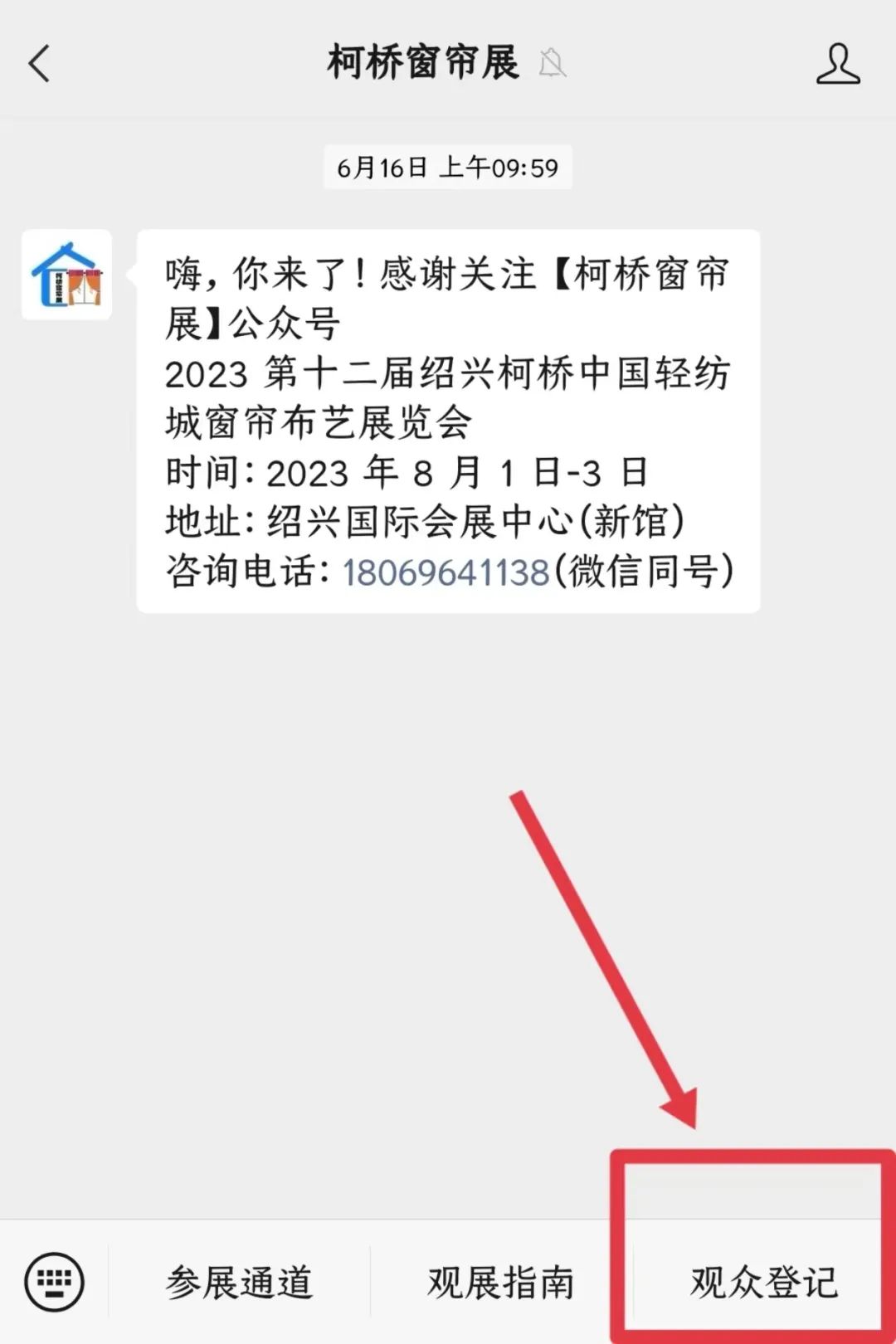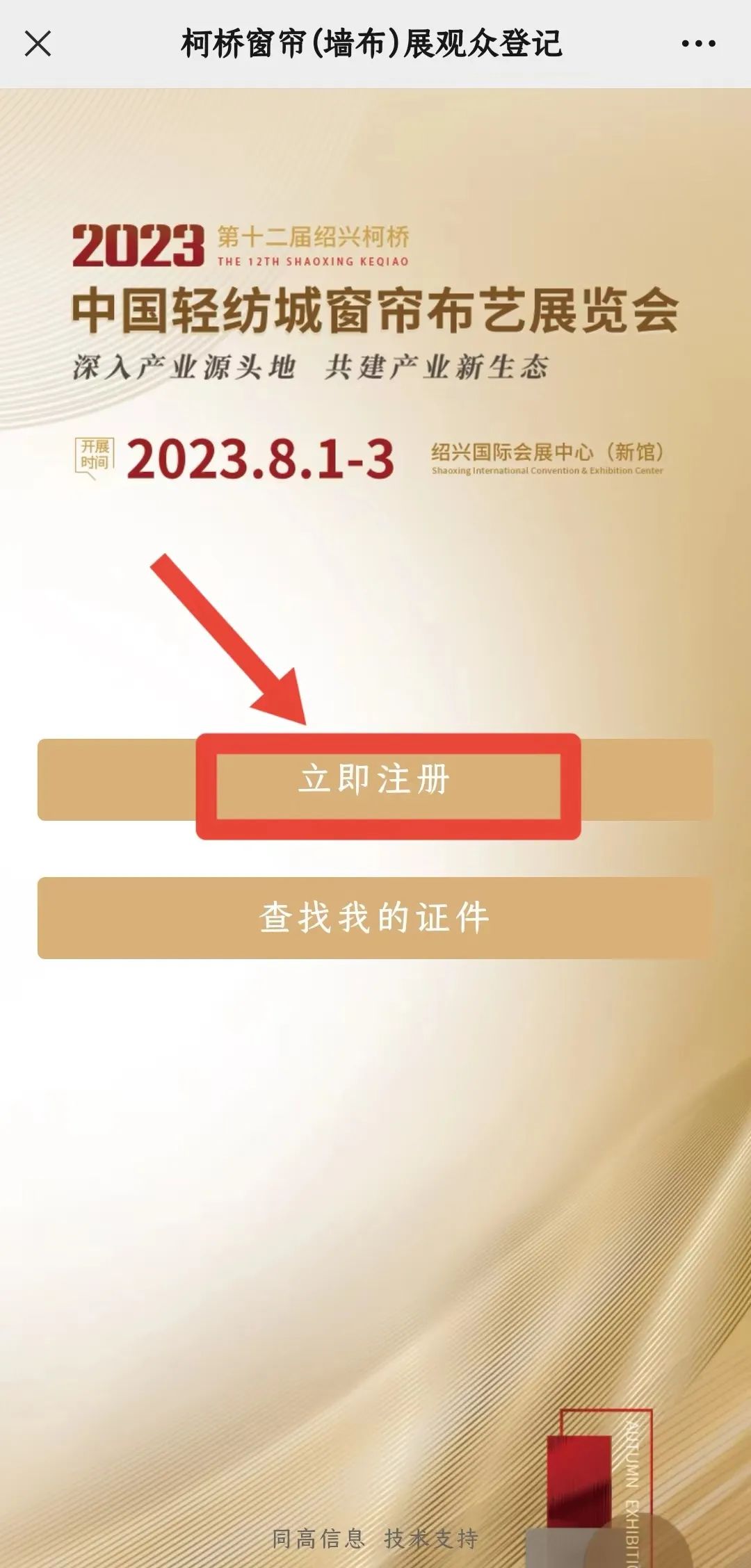 已注册完成的观众,可回到“柯桥窗帘展”公众号页面,点击“观众登记”回到注册页面,点击“查找我的证件”即可获取进场二维码
