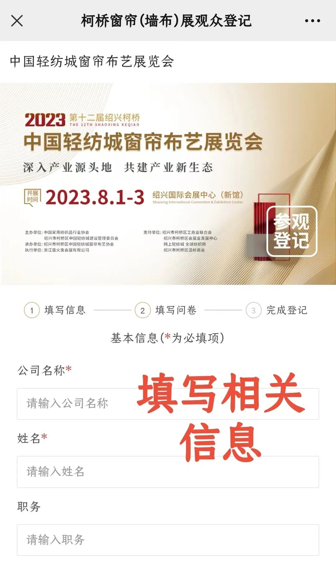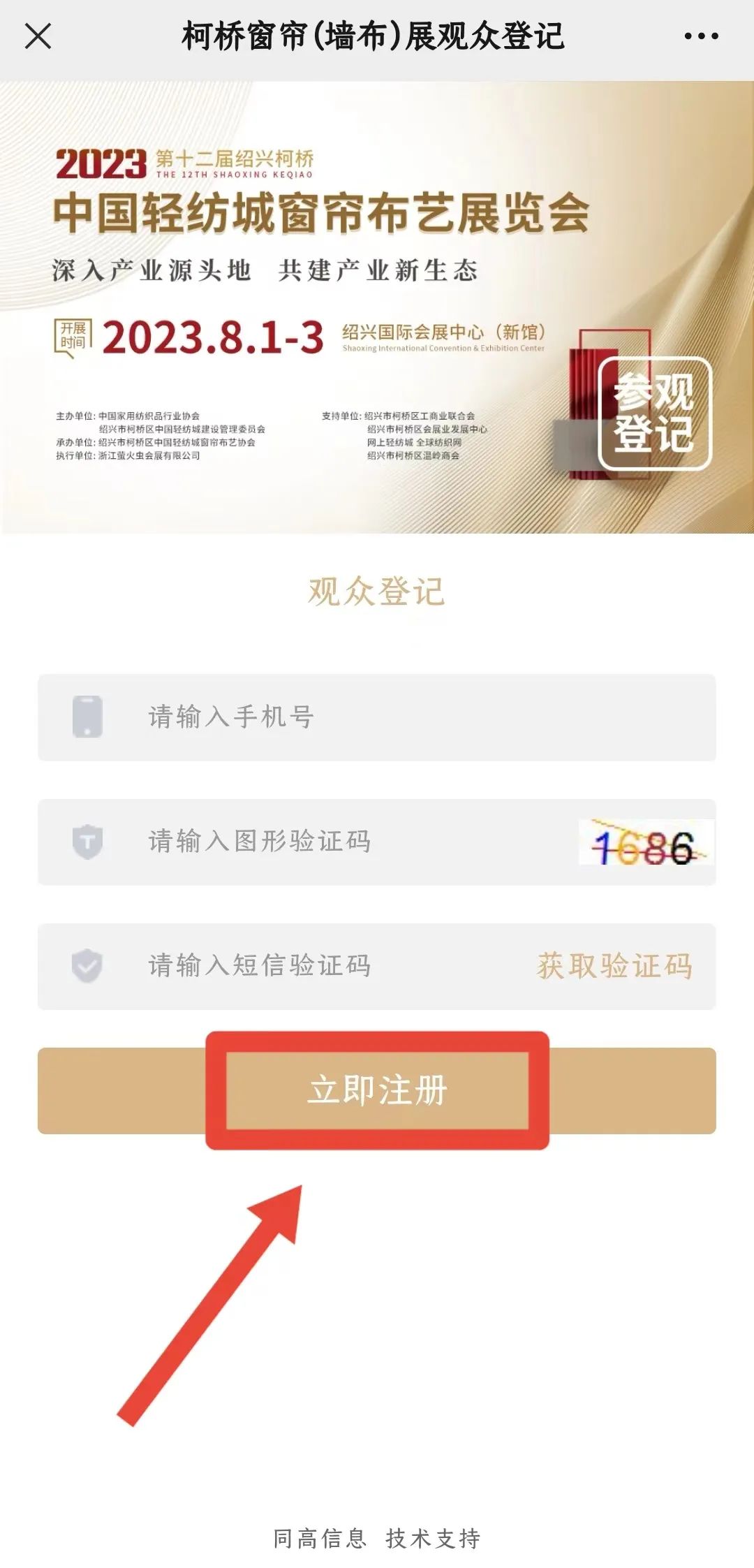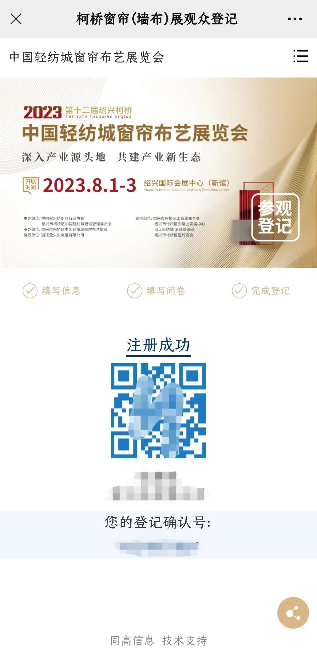 已注册完成的观众,可回到“柯桥窗帘展”公众号页面,点击“观众登记”回到注册页面,点击“查找我的证件”即可获取进场二维码