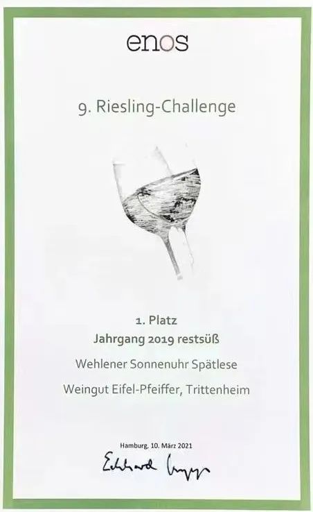 德国葡萄酒协会组织的“2023年度-中国市场TOP50德国葡萄酒”评选中“卫恩村日晷园雷司令晚收”又再获“Top 50”, 也就是中国市场最好的50款葡萄酒的称号。