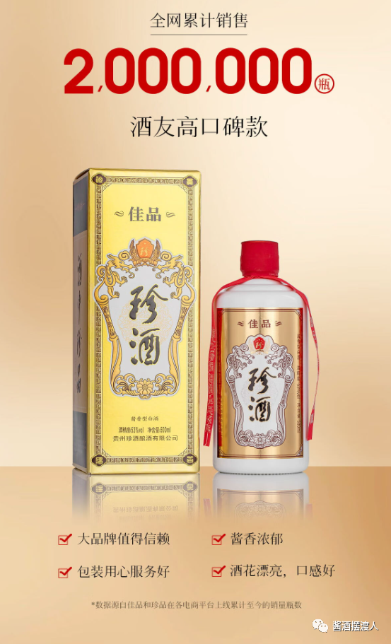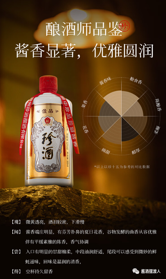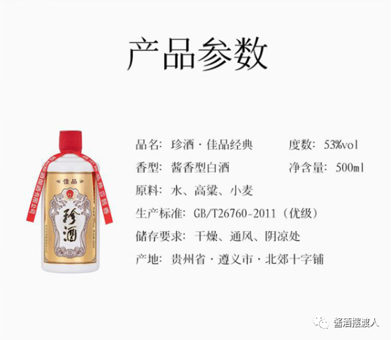 珍酒佳品1的特点是酱香突出,香气浓郁,层次清晰强烈,回味较强劲。珍酒 本品用优质高粱,小麦为原料配以当地甘冽泉水采用中国传统独特工艺,