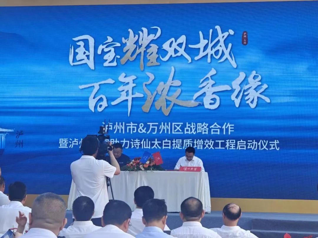 7月3日上午,泸州市与万州区战略合作暨泸州老窖助力诗仙太白提质增效工程启动仪式在重庆市万州区举行。启动仪式上,泸州老窖集团有限责任公司、重庆市诗仙太白酒业有限公司签订了战略合作协议,颁发了首席技术顾问、首席质量顾问聘书,举行了迎糟仪式、出酒仪式。(来源:泸州发布)
