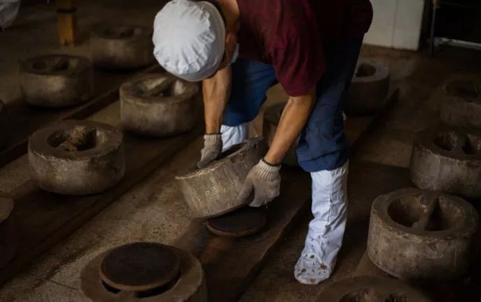 用纱布将固定种类的重量的普洱茶装好,蒸汽软化茶菁后,将其压制成饼、沱、砖、瓜等形状。