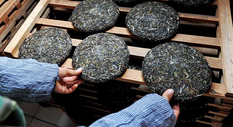 新采摘的茶叶经过 采摘、萎凋、杀青、揉捻、晒青、压型、风干、包装,到达茶友的手中。他们看着一片片嫩芽在自己手中发酵、沉淀、荡去了青涩,留下了古朴的色泽和醇厚的香味,心中也无比欢喜。