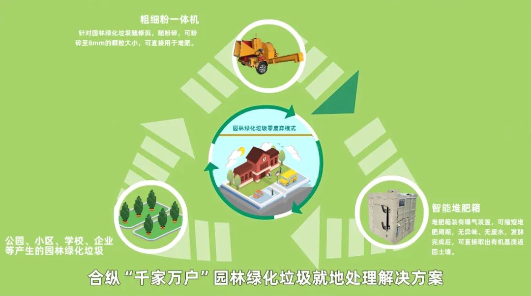为了解决社校企内园林绿化垃圾的资源化利用,合纵认为适宜在社校企内进行园林绿化垃圾的就地处理,通过简单的设备及技术支持,收集后粉碎并堆肥,加工出有机基质回归土壤。