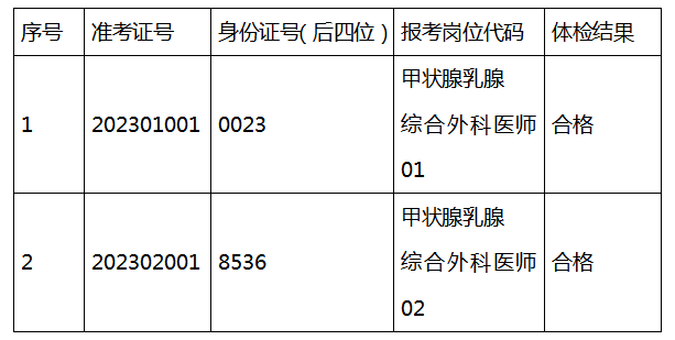 根据《安顺市妇幼保健院参加“第十一届贵州人才博览会”引才后续招聘工作方案》的安排,我院于2023年6月30日结束了参加“第十一届贵州人才博览会”引才的体检工作,现将体检结果进行公示。