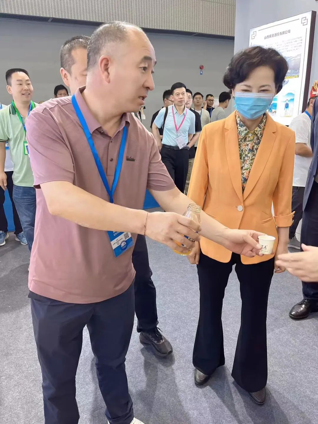 图为我公司陈吉董事长为工信部副部长徐晓兰品尝产品,经过品尝并了解雁门古道产品及品牌文化,领导特别给予雁门古道沙棘汁极高的评价和肯定,并表示要大力支持发展沙棘产业,推广地方品牌发展,提高产品知名度,增强特色农产品的国际国内市场竞争力,促进现代农业发展。