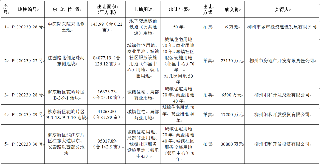 2023年柳州市第23期国有建设用地使用权交易会成交结果公布
