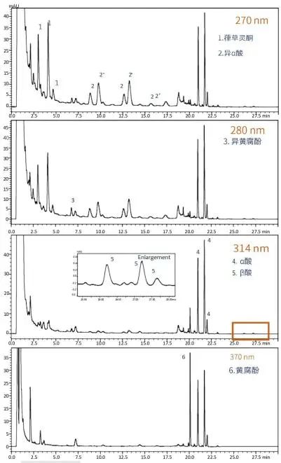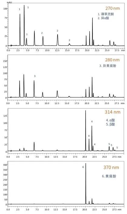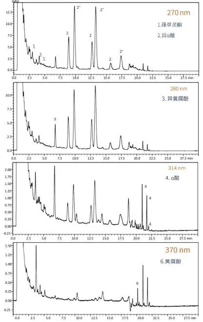 我们将介绍一种基于HPLC同时检测啤酒中的黄腐酚、异黄腐酚、葎草灵酮、异α酸、α酸和β酸6种风味成分含量的方法,为探索啤酒的独特风味提供帮助。