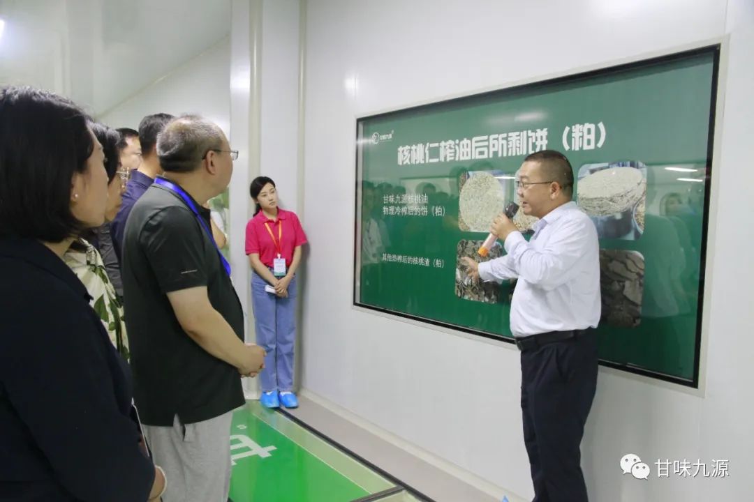 在产品展厅,九源董事长王中正热情邀请观摩组对九源核桃系列产品进行品鉴。在品鉴完后大家赞不绝口,尤其是对九源旗下的核桃油,纷纷表示品质极佳、口感香醇。